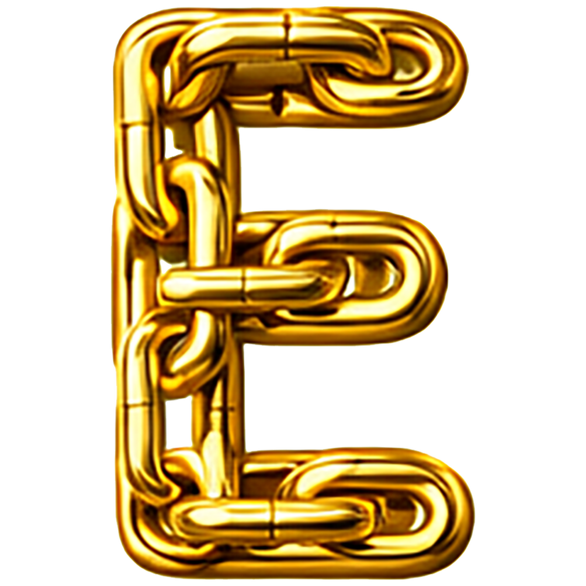 | Titel | Goud chroomlook letter los E ketting strijkletter |