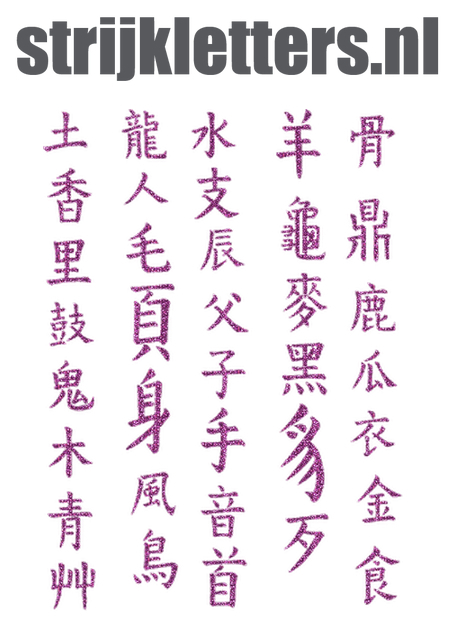 | Titel | Vel Strijkletters Chinese Tekens Glitter Lavender 428 |