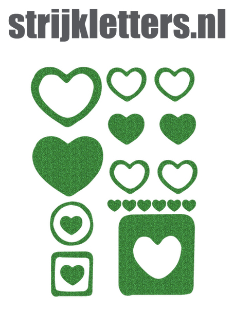 Vel Strijkletters Harten Glitter Green Glitter 455